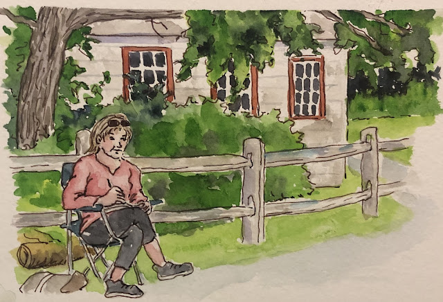 I went off in search for Campo Santa Margarita in the Dorsoduro section of Venice. It was quite a lively location with a lot of bars and restaurants. There were crowds of young people hanging out all around me. I sat down and started sketching a couple. A few minutes later they decided to change tables so I had to look for new models. I’ not sure if this couple was aware that I was sketching them until another couple walking by noticed and commented rather loudly…”it’s that couple there.” My models did stop by a bit later and loved the sketch. Too bad it was still quite a bit away from being finished. (Rule #1 - start sketching the part of the scene that may move away first.)