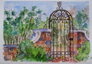 This weekend my sister, Michelle and I drove up to visit another sister of ours who lives in Maine. We turned it into a visit/painting trip. Here is a what I painted first. This was done across 2 pages in my Sketchbook Project journal. This is the Colonial Pemaquid Cemetery.
