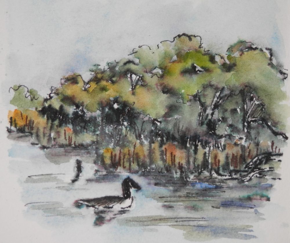 This sketch includes what is left of the 69th St Transfer Bridge which allowed the transfer of railroad cars from the rail lines to car floats which crossed the Hudson River to the Weehawken Yards in NJ. Nora is sketching on the right.