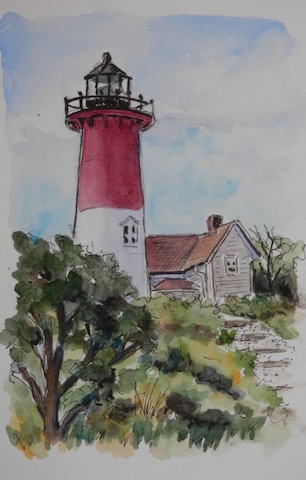 Back to my trip to Cape Cod. On our second day I wanted to visit the Nauset Lighthouse in Eastham. It was about a 30 minute drive from where we were staying. When I got there I realized my backpack with my art supplies was back in the room. Grrr!!!! Luckily I always keep sketching and painting materials in my car. These were done in a small moleskin.