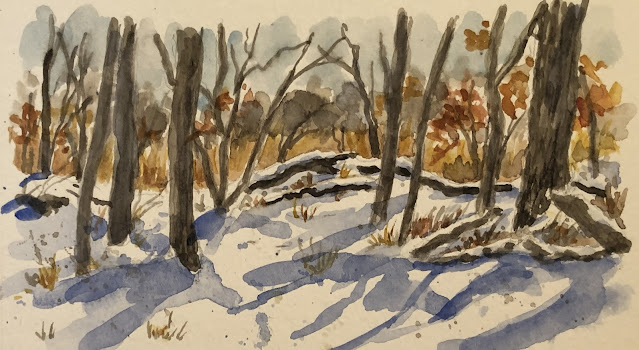 We recently had about 4 inches of snow. Although it is an inconvenience it definitely improves the wintry look of things. This was painted in Brookhaven.